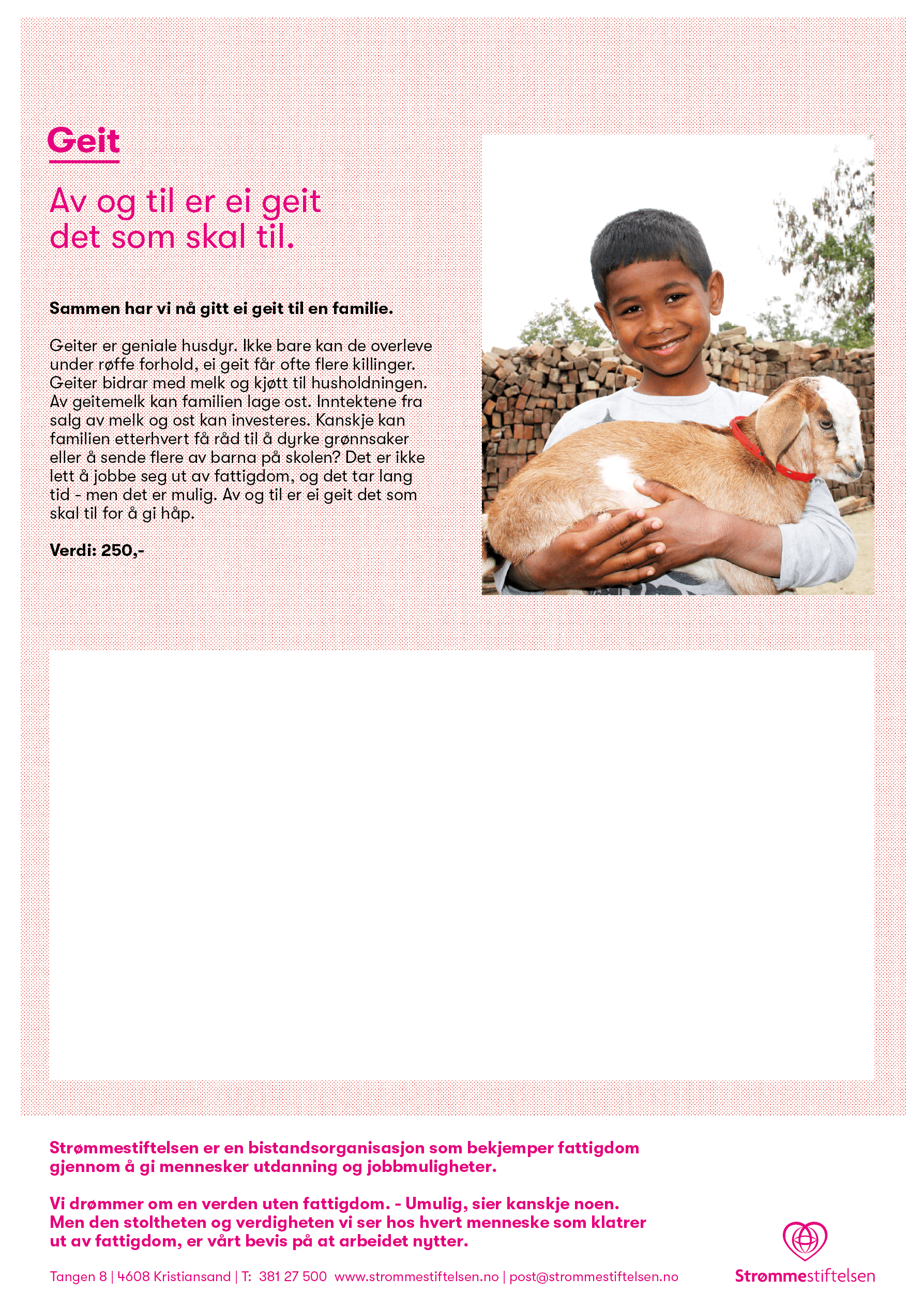 * Dette er en symbolsk gave. Pengene fra denne gaven går til å støtte dem som til enhver tid trenger det aller mest.
